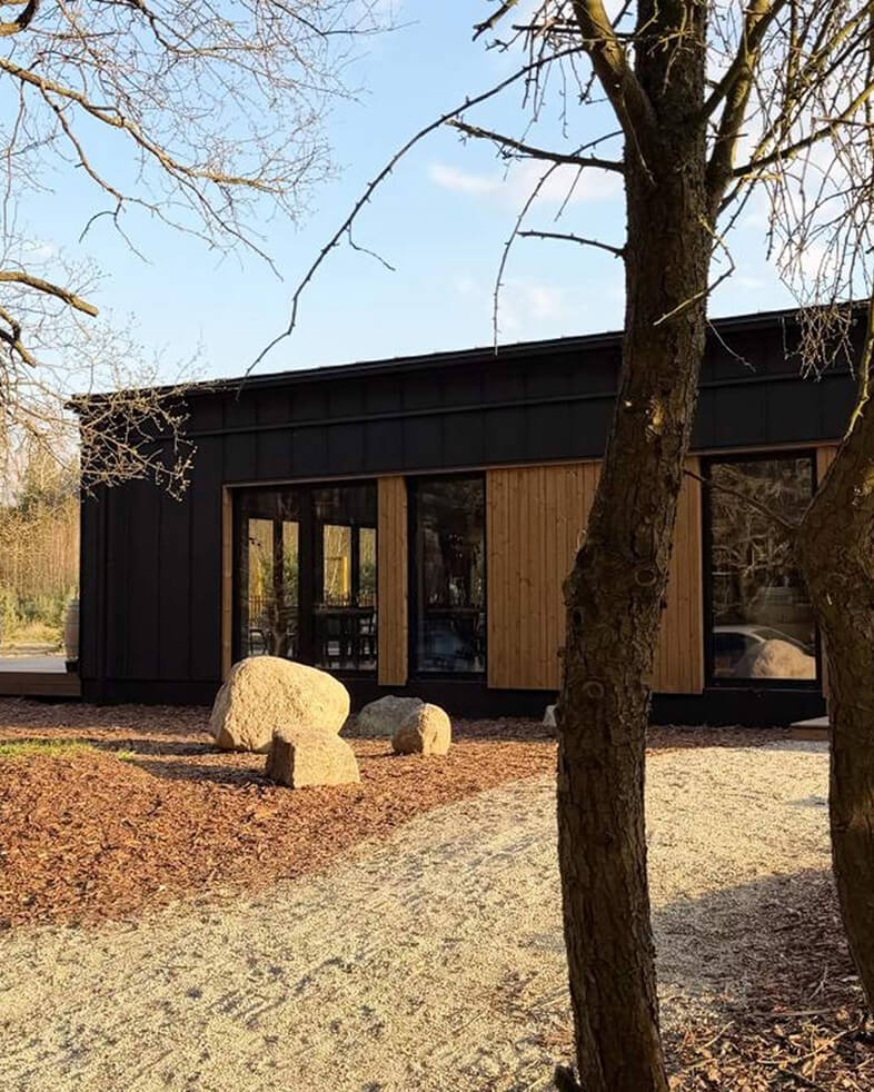 Przestrzeń harmonijnie wpisana w naturę, gdzie architektura spotyka krajobraz, a każdy detal opowiada historię o spokoju i pięknie prostoty.